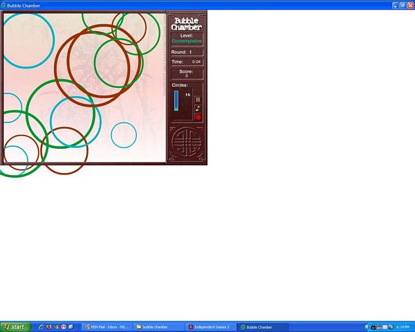 Description: Bubble Chamber is a logic/strategy game where the player clears the game area of circles by matching circles of the same color. However, if the circle you moved happens to overlap circles of a different color, more circles appear.