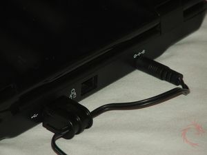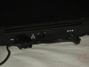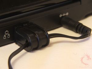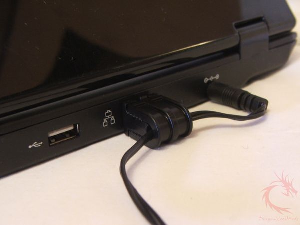 RJ45) on a laptop computer as a stay or restraint to keep the very