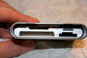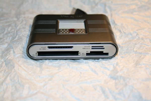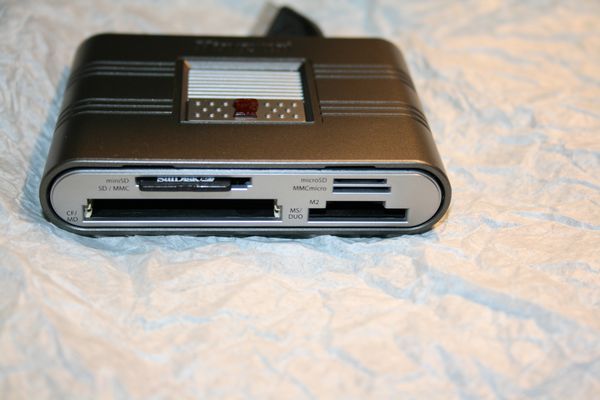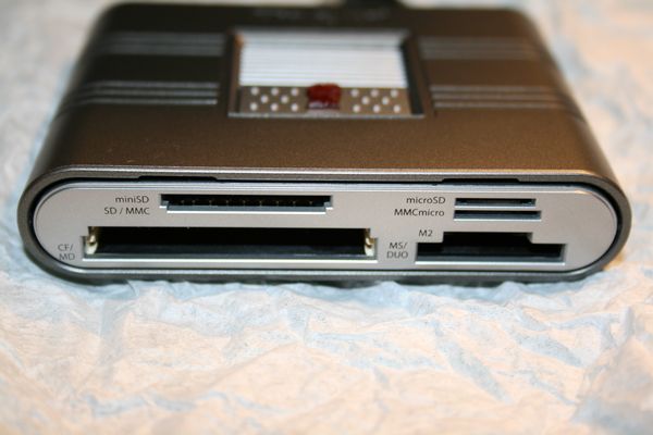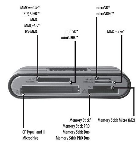 Versatile with five slots, works with 19 different Flash card formats: CompactFlash Type I and II, SD, SDHC, miniSD, miniSDHC, microSD, microSDHC, MMC, MMCmobile (DV RS-MMC), MMCplus, MMCmicro, RS-MMC, Microdrive, Memory Stick Micro, Memory Stick , Memory Stick PRO, Memory Stick Duo, Memory Stick PRO Duo