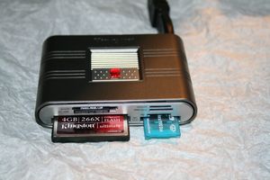 For media testing, I used Kingston SD 256 GB, SanDisk Memory Stick Pro Duo 2 GB, Kingston Ultimate CF 266X 4GB, Sandisk Ultra II 2 GB, and a SandDisk 512MB Mini SD