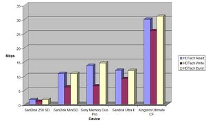 The software used to benchmark these CF cards was SiSoftware Sandra Professional Business XI and HD TachRW.
