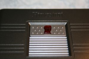 The 19-in-1 Card Reader sits in a charcoal gray slider chassis which has a silver switch with a red Kingston emblem which lights up when the drive is activated.