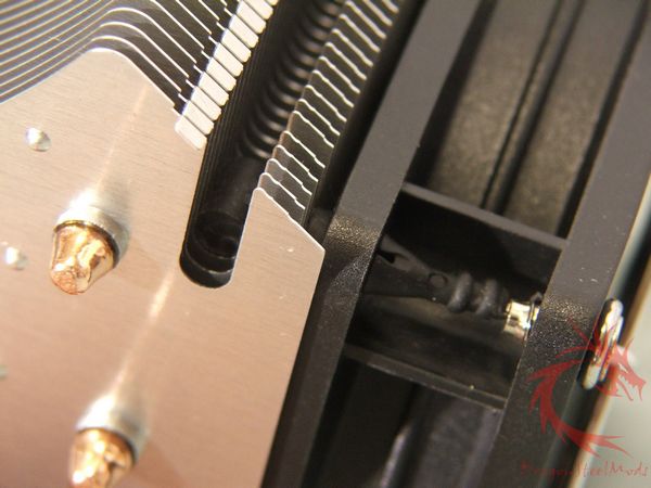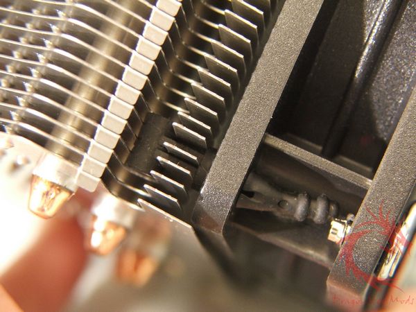 Here's a few shots looking at the cooler from the bottom, you can see most of the height comes from the heatpipes, the fin section is basically held up by the pipes themselves, so care should be taken when handling and installing as not to bend the pipes and possibly impede performance of the cooler.