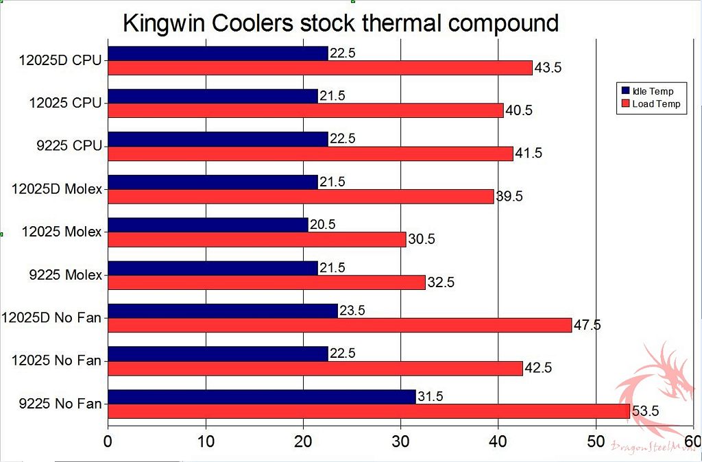 The first set of tests were run using the included white thermal compound, the rest of the tests were run using Arctic Cooling MX-2 Thermal Compound to insure good comparison results with the other coolers.