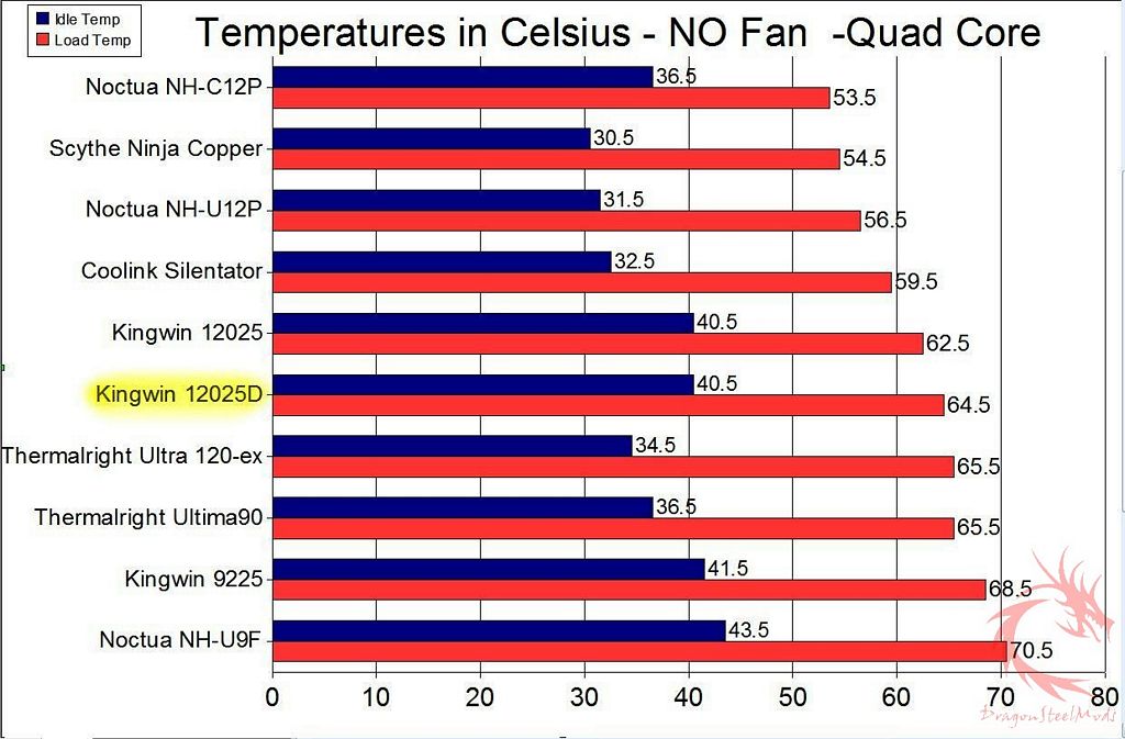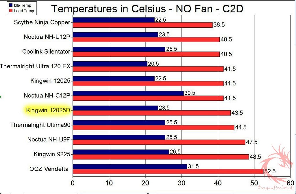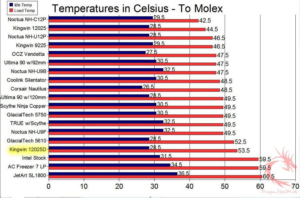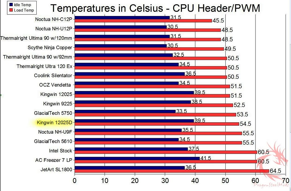 The Kingwin RVT-12025D CPU cooler is average at best, when compared to others out there today it falls about the middle in performance.