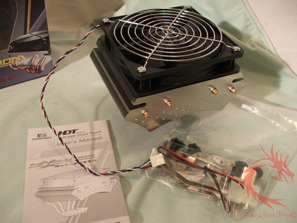 Unpacking the 12025D we find the cooler itself, LGA775 mounting brackets, screws, white thermal compound and a Molex to 3Pin adapter.