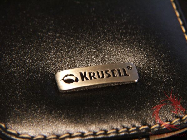 Now, here's the Obit case itself, it's black leather with a metal Krusell logo badge on the front flap.