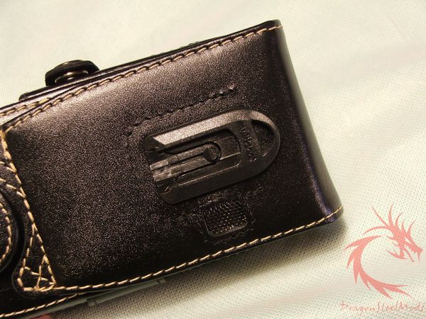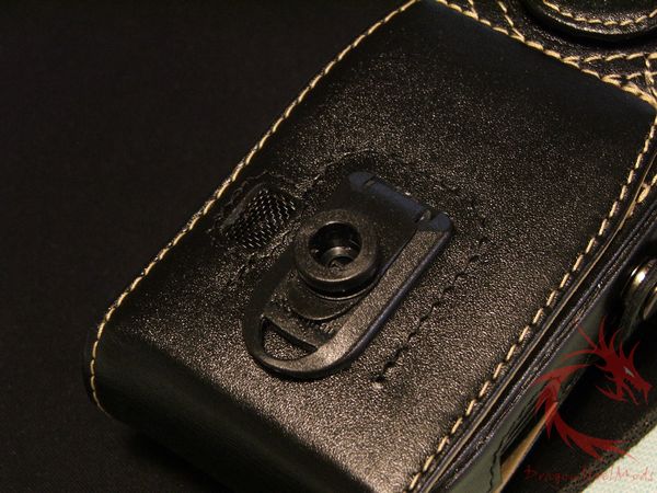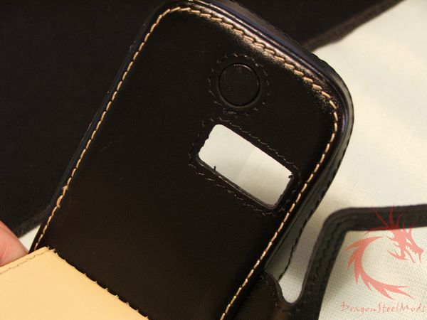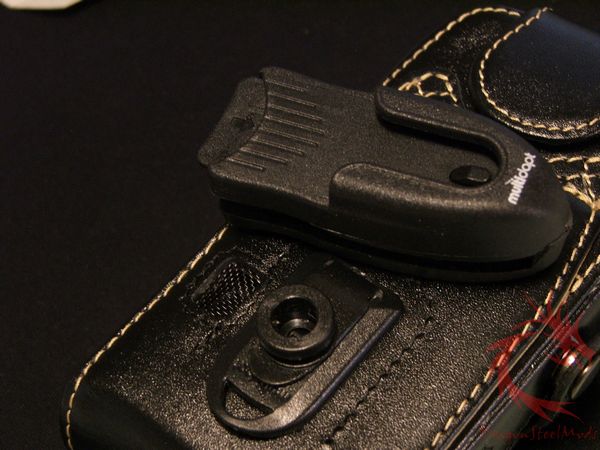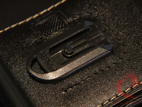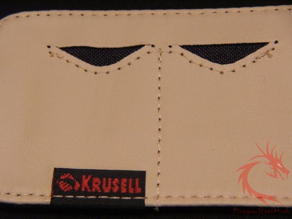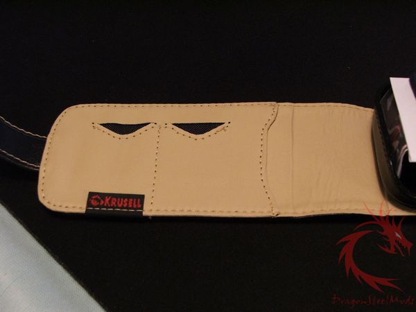 On the back we find part of the Multidapt system attached, this clip can be used with any clips in the Krusell Multidapt system. On the back you can also see a small square of screen, this is directly above the speaker of the phone to allow sound to get out. The Orbit is very well made, there is tight stitching all around with double stitching at the stress points so it should last quite a while.