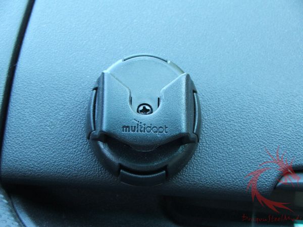 Before we get more into the case itself, here's the CarHoldicKit, it comes in a small box. Inside the box we find the product itself, instructions for installation and a 'knob' attachment for the Multidapt system if needed with your case. The CarHoldicKit can be attached with adhesive tape or the included screw for a more permanent mounting system.