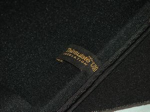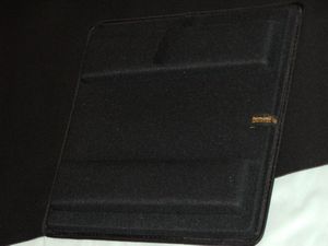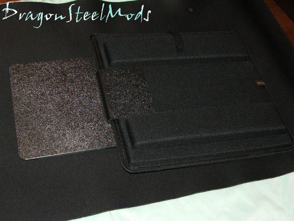 The bottom of the Lapinator is a black cloth material with 3M Thinsulate inside of it to help block the heat of your laptop from reaching your legs.