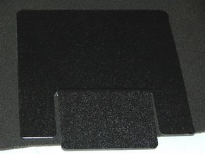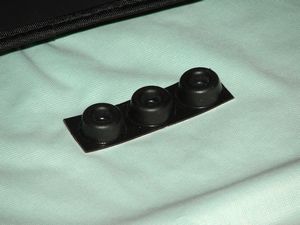 The Lapinator’s durable polyethylene top provides a non-skid surface that still allows for easy laptop position changes during use. For those laptops without their own rubber feet (older Compaqs), or if an extra measure of stability is desired, please use the self-adhesive bumpers which prevent any movement. Though the Lapinator’s surface may distort a little bit during use as it dissipates the heat, it’s melting point is well over 200 degrees.