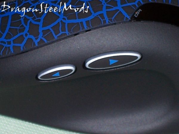 Behind the scroll wheel is where we find the DPI adjustment buttons, the G5 has the ability to change the DPI up or down, which is a very nice feature. It seems most gaming mice have only one direction to change the DPI and that is up, it forces you to go through all the resolutions to get to where you want. In the following picture you’ll also notice that even the area around the scroll wheel and DPI buttons is textured as well, just thought I would point that out…
