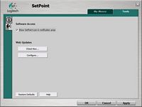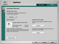 Back to the main SetPoint screen, if we click the second tab labeled ‘tools’ on the top right it opens up options for ‘Information Resources’. Here you can access several things from Logitech, the Help Center, Ergonomic Information, SetPoint version info and the Logitech Support.