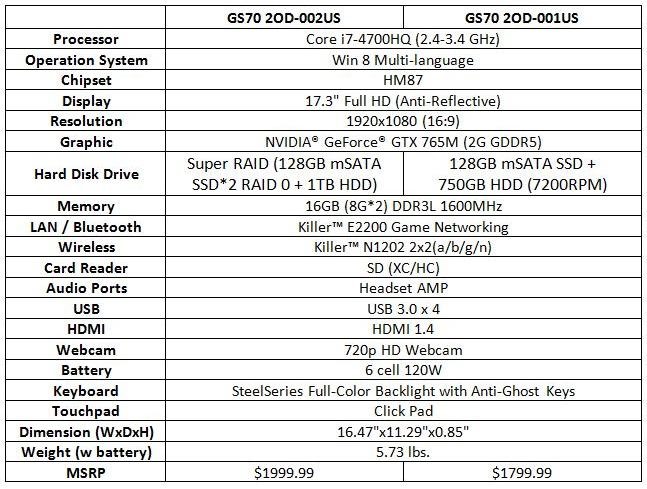 “The MSI GS70 sets a new mark for gaming rigs,” said Brian Choi, Senior Product Manager at NVIDIA. “With the super-fast and super-efficient GeForce GTX 765M GPU on board, MSI is able to offer the thinnest chassis ever seen in the gaming segment.”