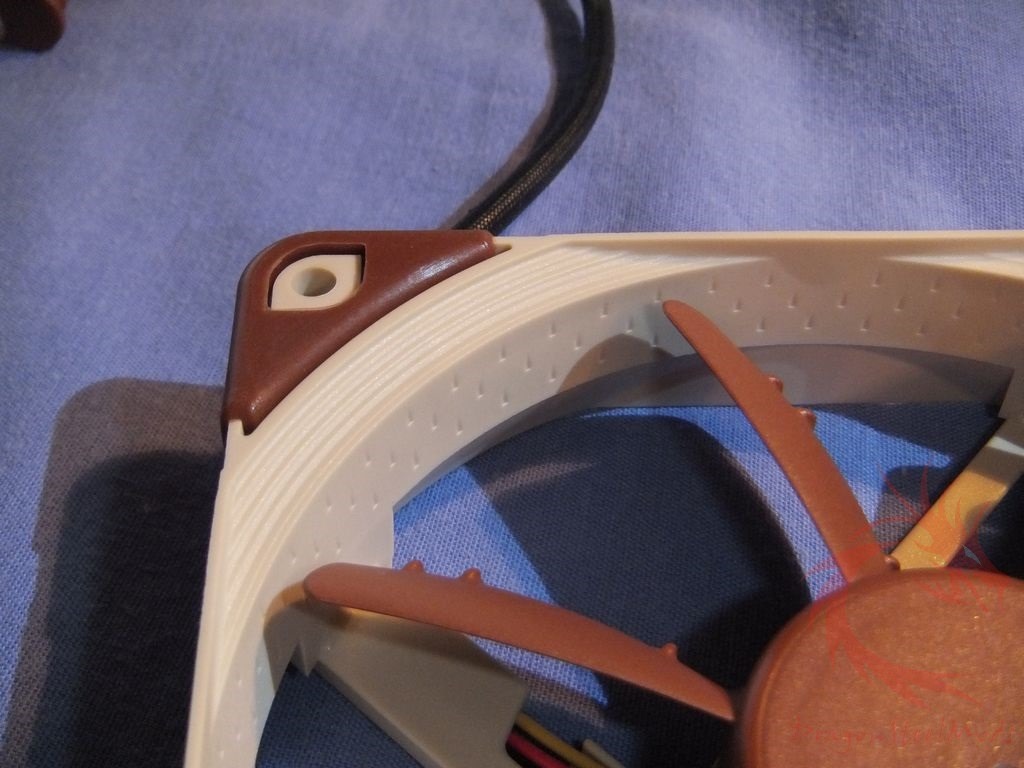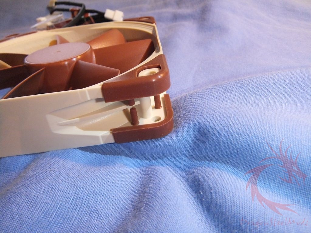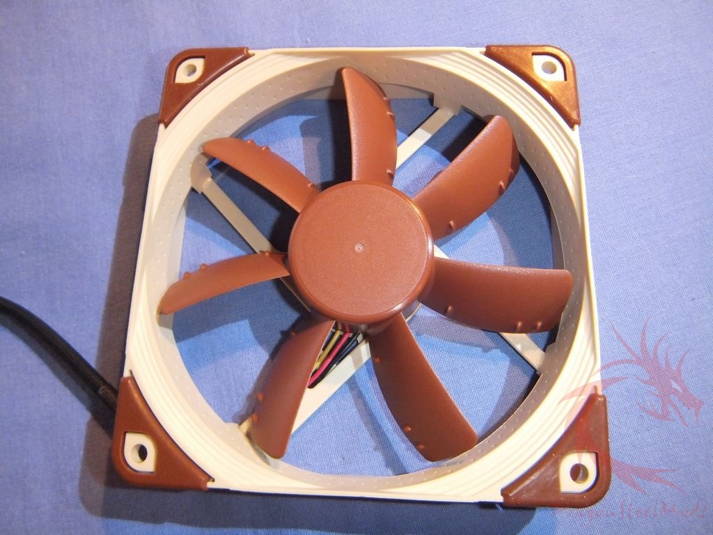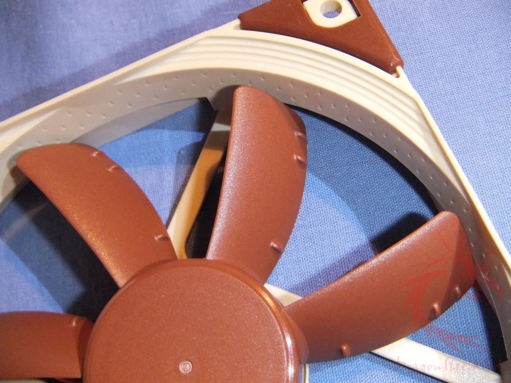 Here’s the fan, it’s beige and brown, pretty much the same as any other Noctua fan. The fan has seven blades and the blades have little bumps on them.