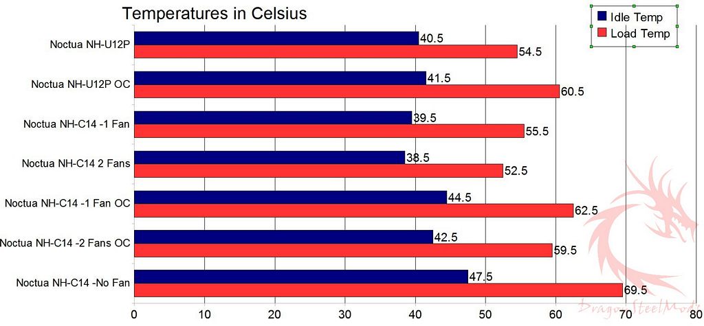 In the following chart you’ll find temperatures for the Noctua NH-U12P