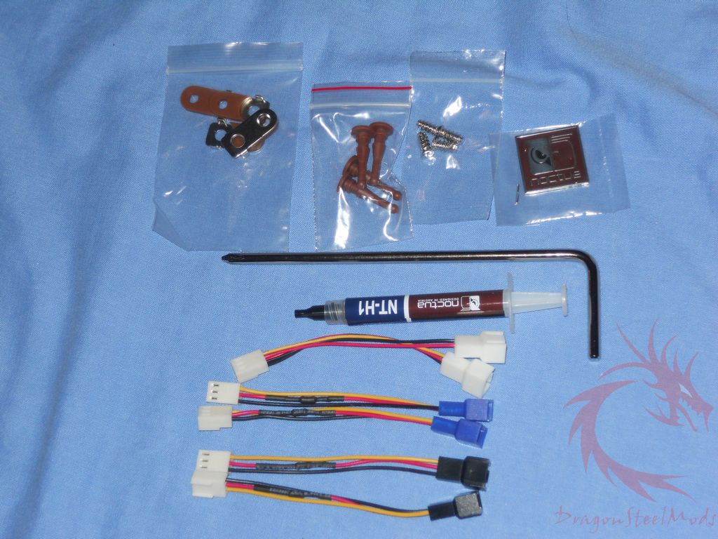 thermal compound, nice Noctua case badge, screws and accessories to mount