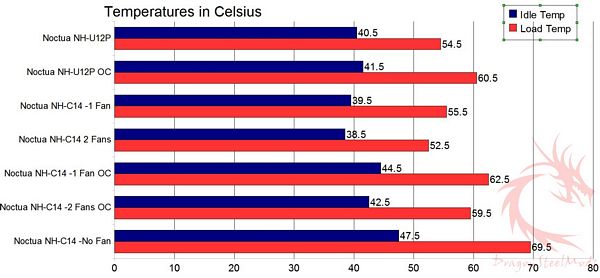 at stock speed and overclocked. You’ll also find temperatures for the NH-C14