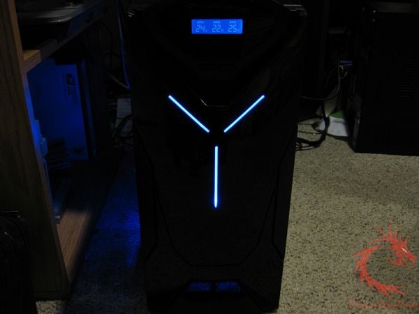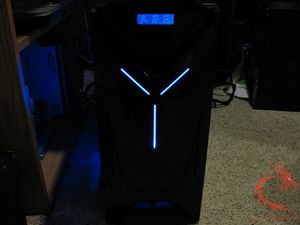 powered on the case emits a blue LED light from the front panel, the