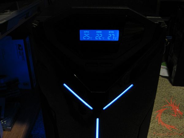 the door is a display panel which shows the temps of the CPU, System