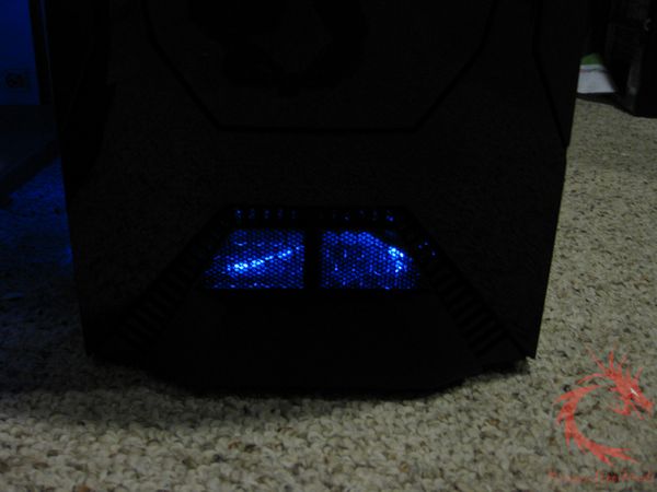 power button, side case panel and the bottom grill. Blue LEDS, you