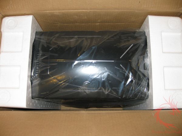 The case is protected in the box by two Styrofoam inlays.