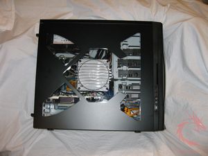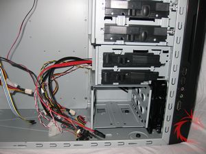 the lowest hard drive cage. Above the hard drive cage are the 5.25