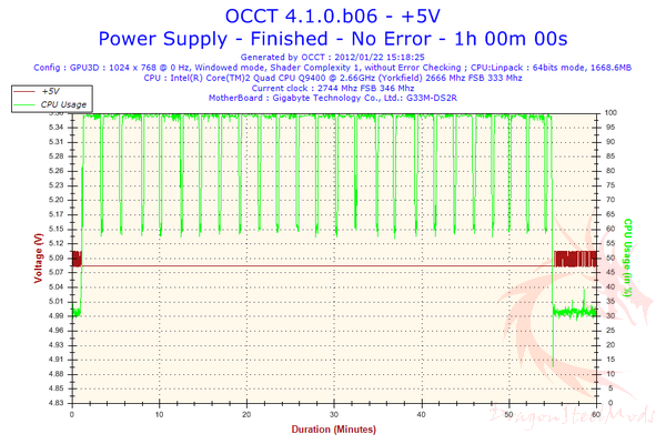 Next the 5.0V rail is very stable maintaining most of the test time at 5.10-5.1V1 range.