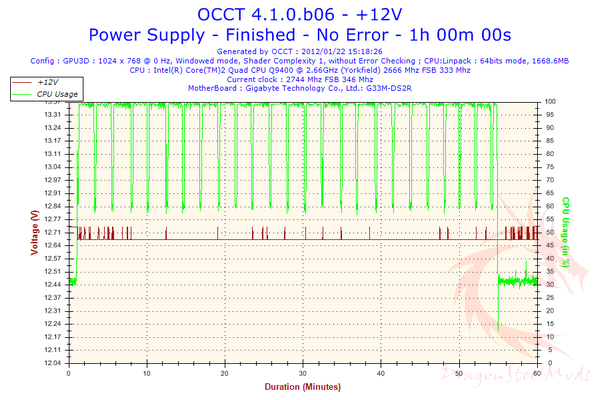 Finally we look at the 12V rail and see it operating at 12.26V, once again within the tolerance range for the 12V rail.
