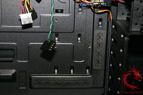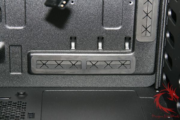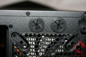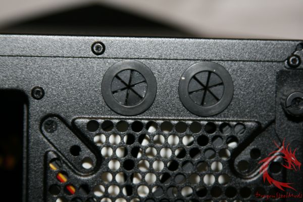 numerous case and motherboard tray punch outs and rubber grommets for wire organization.
