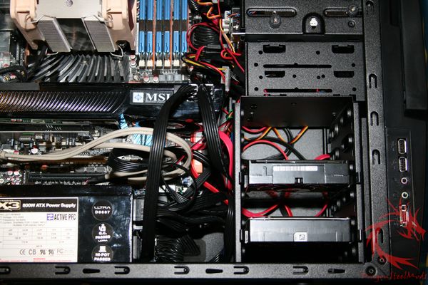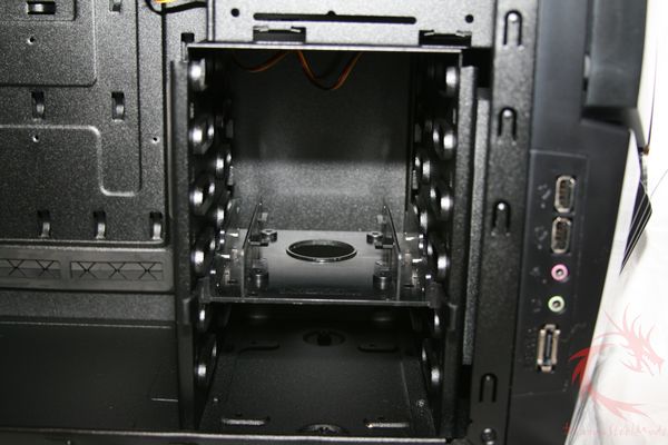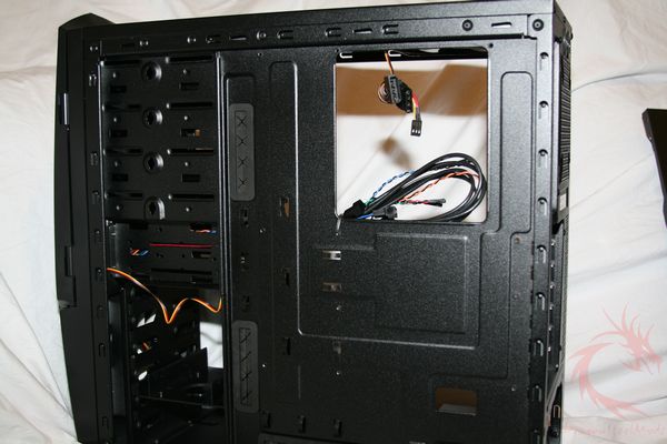 black interior along with a 5.25″ stealth bay, turned HDD cage,
