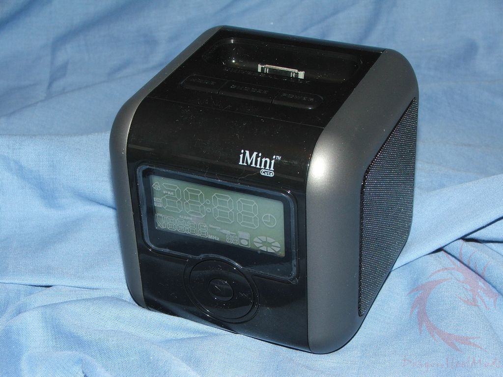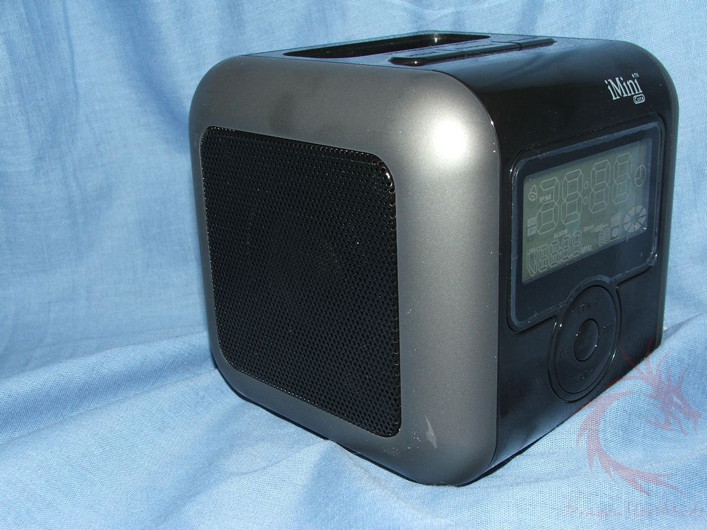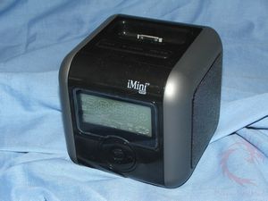 The iMini is a funky iPod FM radio alarm clock which produces fantastic sound, looks great and makes an ideal bedroom companion whether at home or on the road. The Ozaki iMini Alarm Clock Speaker System gives you the option to listen to either music from you iPod or FM radio with the ability to store up to 8 radio channels.