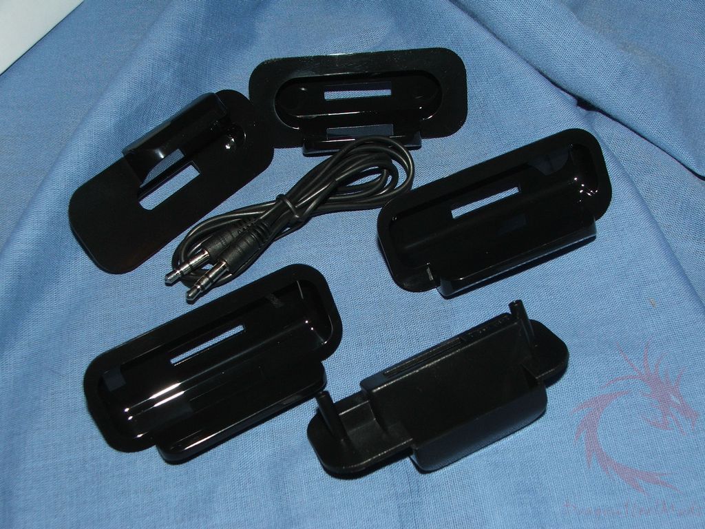 Inside the box you’ll see the dock/speaker, instruction manual, dock adapters, power supply in little white box and a double ended 3.5mm cable. The power supply I received was one for UK, but I do have one adapter so that’s not a big deal.