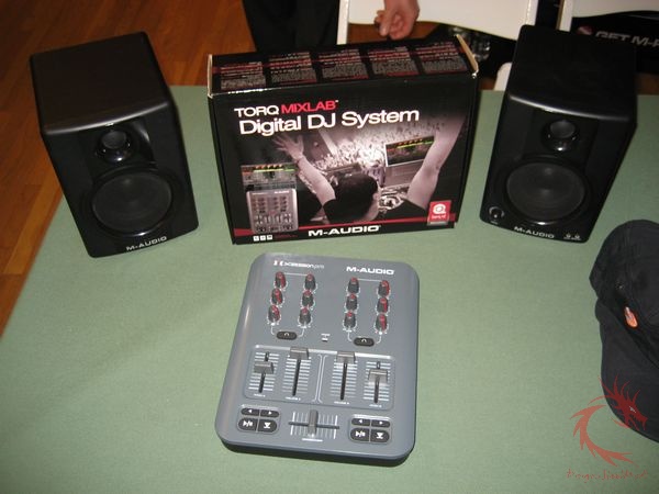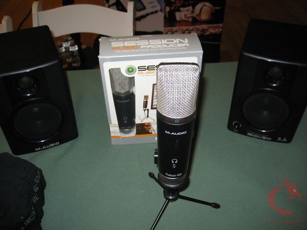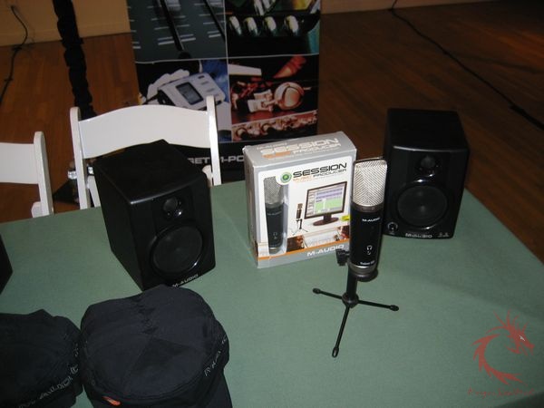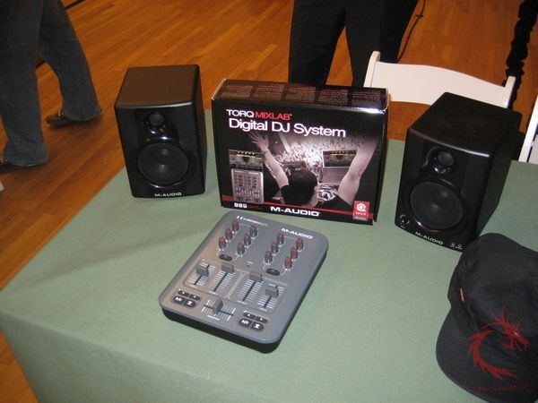 Next up, M-Audio was displaying three of their newer products. The Session Music Producer is a PC or Mac enable microphone which can be used for vocals for music, videos and podcasts. It attaches via USB and has a front headphone jack which allows you to hear the audio in real time, great for podcasting!!! The Torq MixLab is a consumer level Digital DJ System for those who want to remix or mash up their music collections. Finally, they had their Studiophile AV speakers which come in 15 and 20 watts variations and are designed to provide high resolution professional audio optimized for home computer environments.