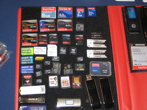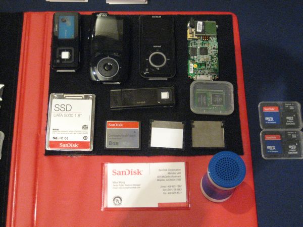 Once the event began, I made my first stop at the Sandisk table. They were promoting their new microSDHC Cards which are the worlds smallest flash cards for mobile phones. They were available in two sizes: 6- and 8- Gigabytes. Indeed these were small SD cards. They make the miniSD cards look gigantic. The nice feature of this new card is that it comes with both a standard SD and mini-SD adapter.