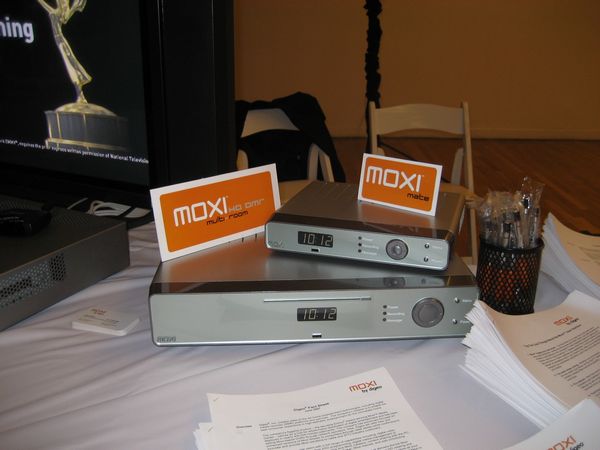 I next visited the Digeo table who are the makers of the Moxi. For those not familiar with the Moxi, it is touted as a DMR (Digital Media Recorder) and it is vying to be the media hub for todays home. They were promoting the Moxi Multi-Room HD DMR which should be available sometime this fall. This product in conjunction with the Moxi Mate allows access to the Moxi Multi-Room HD DMR from another room. One exciting feature is the ability to start watching one program in one room and finish where you left off in another.