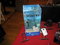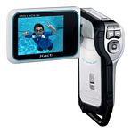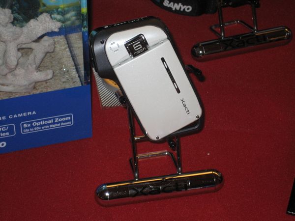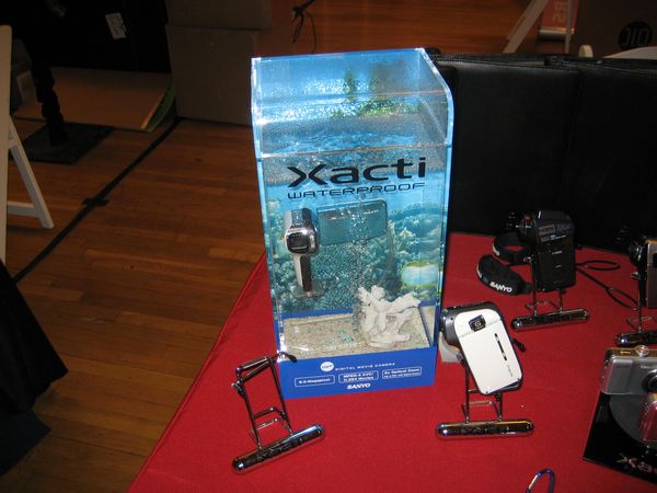 The next stop was at Sanyo where they were touting the Xacti E1 as the worlds first waterproof camcorder. Described as ideal for active families, vacationers and water sports enthusiasts, the ultra-compact E1 can record high-quality video and 6-megapixel stills under water to a depth of five feet for up to one hour at a time.