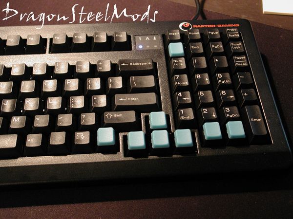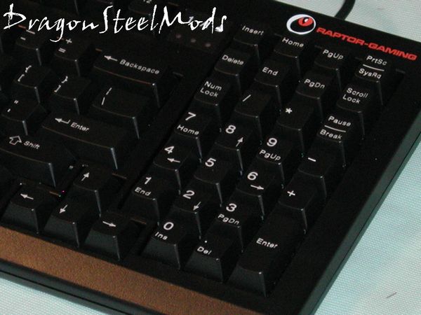 The Raptor-Gaming K1 keyboard itself is smaller than your standard desktop keyboard, you’ll notice the block of buttons that is normally above the cursor keys is located above the keypad, doing this allowed for a shorter keyboard but yet still basically full sized. Having a smaller keyboard is great if you need to travel with it, to lan parties or wherever…