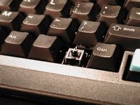 Don’t like that key so it has to go, as does the Windows key, I never use them but I always end up hitting them accidentally. To lock a key you need to remove the keys above it, this is done with the special tool that comes with the K1, it is very easy to use, just push down, it clicks in place and you gently squeeze and pull the key or keys off. You slide the lock under the key you want to lock and it clicks into place making it so you cannot press the key.