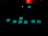Of course here is a picture of the keys in the dark, even in low lighting they do glow a bit and stand out from the rest of the keys.