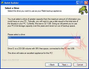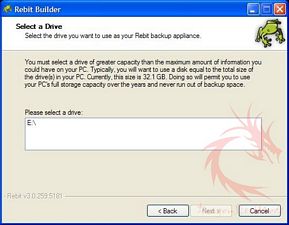 Rebit “appliance”. You are initially asked to select a drive to