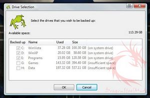 +Can select which drives to backup