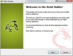 starts the Rebit Builder which converts your external drive into a