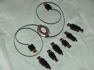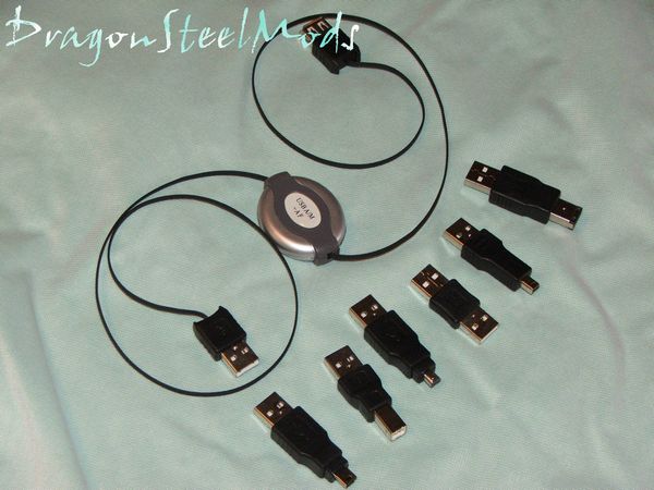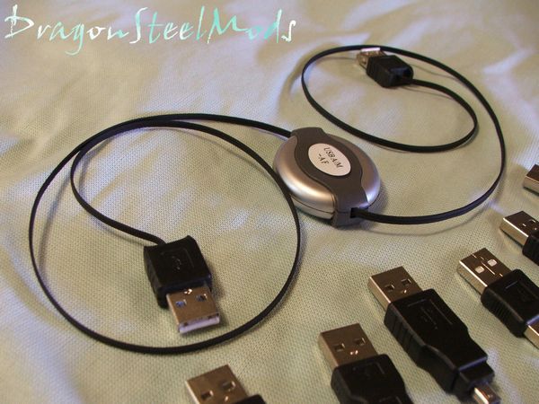 As the specs mentioned, included with this kit is six USB adapters and a retractable cable.