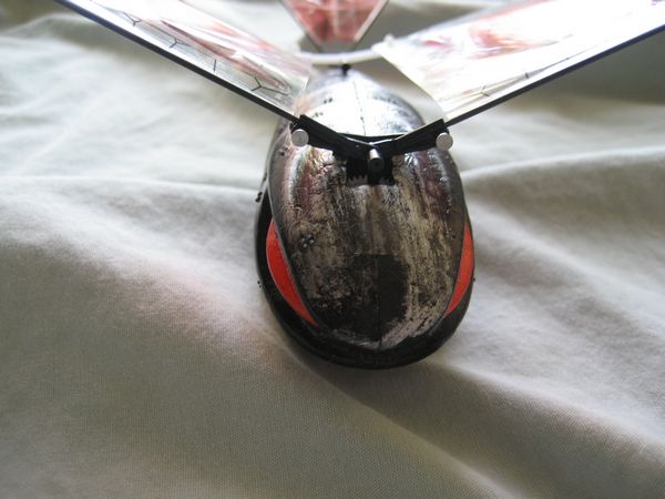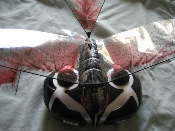 There are two sets of motors on the top of the Vamp, the black ones in the front control the flapping of the wings and the white motors on the back control to left/right movements of the wings.