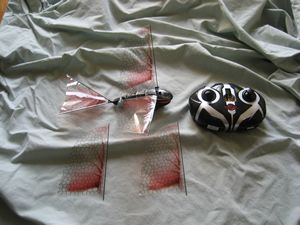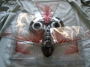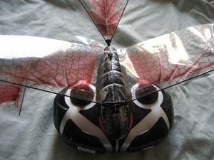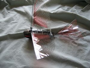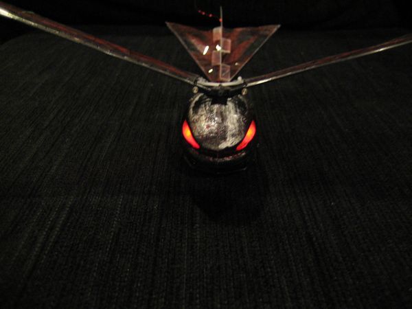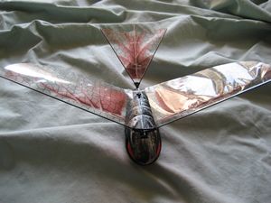This November, the folks at Interactive Toy Concepts are releasing their version of the orthinopter, the iFly Vamp, an indoor/outdoor radio controlled flying bat. The iFly Vamp flies by using its wings. There are no propellers or other plane like structures on this unit. It looks and flies like a bat. With an ominous bat/dragonfly appearance, it will even scare some people including my 5 year old daughter.