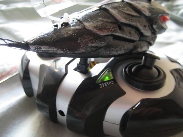 Now, its time for some fun. With the left joystick press forward, simply release the Vamp into the air and watch it fly free. The farther you press forwards on the throttle, the faster the Vamp flaps its wings. The other stick controls the ability to turn left or right (yaw). There is a slight learning curve, but after about ten minutes, you should be able to perform simple flying maneuvers without much difficulty.