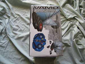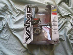 The remote uses six AA batteries and acts as the Vamps charging base station.