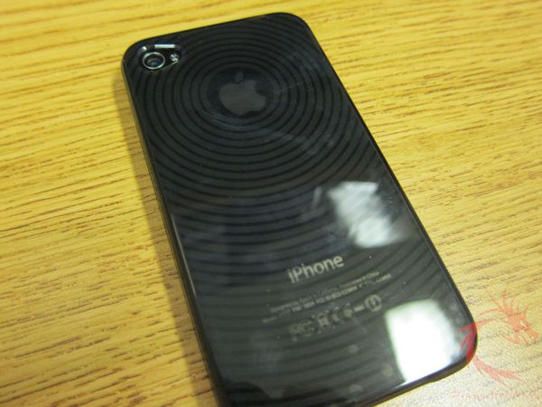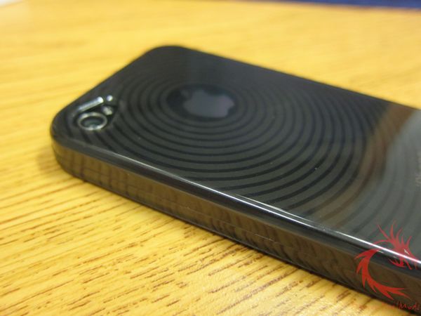 The Rubberized Silicone Case is as the name says – rubbery in texture. When the case houses the iPhone 4 there is a circle pattern emanating from the Apple Logo on the back of the phone. Openings for the headphone jack, mute switch, dock connector, speakers, flash and camera are found on the case while the power and volume buttons are shielded.