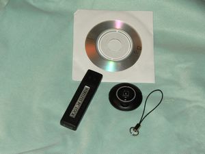 Inside you’ll find the USB Dongle, key fob, software/driver disc and a mini lanyard attachment for your keychain. The batteries come pre-installed in the remote, you just need to pull the plastic tab to make the contacts.
